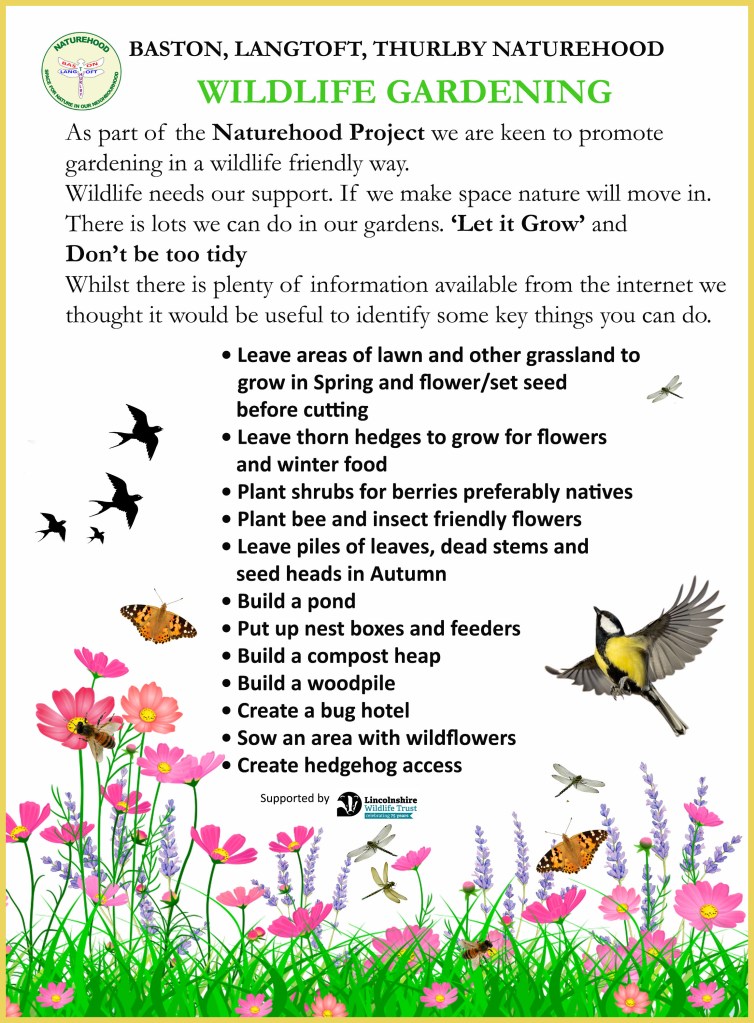 The Lincolnshire Wildlife Trust has lots of helpful information about Wildlife Gardening on their website. This link takes you directly to their Wildlife Gardening page.