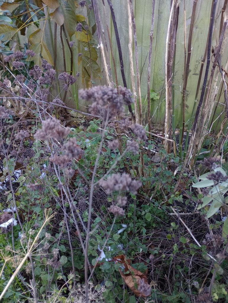 Many invertebrates will hibernate in hollow stems. Either leave in situ or pile in a sheltered corner.